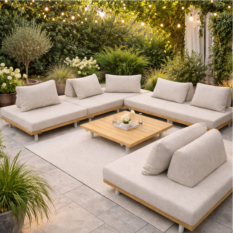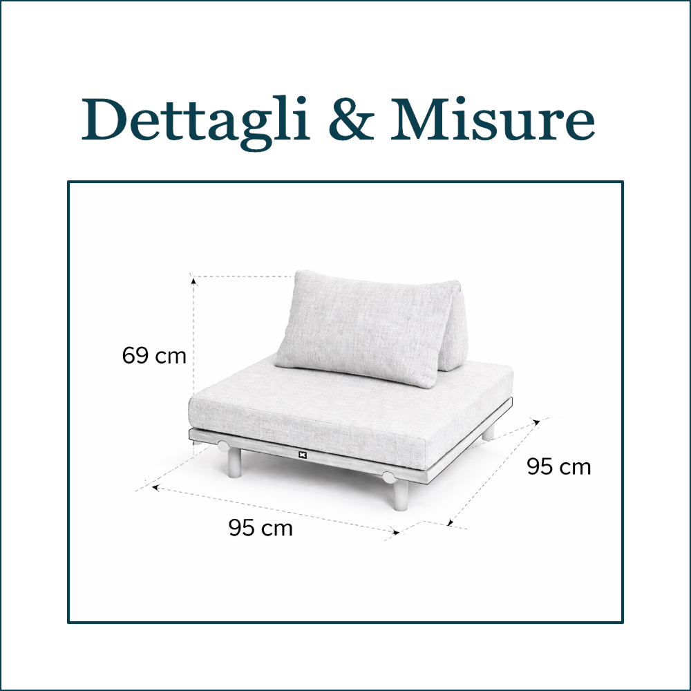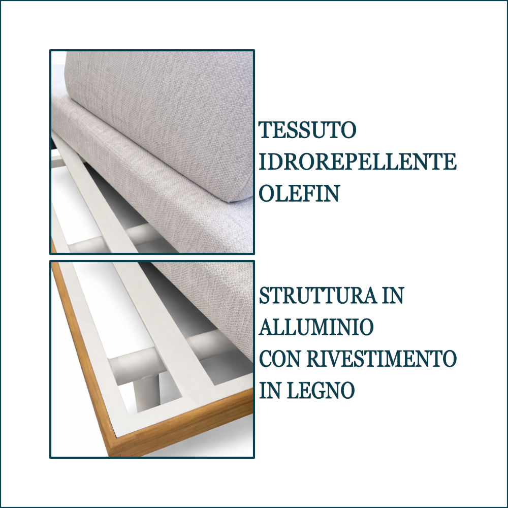 La Poltrona Bali è una soluzione elegante e resistente per l’outdoor: struttura in alluminio verniciato a polvere, rivestimento in legno e cuscini in tessuto Olefin idrorepellente e sfoderabile. L’imbottitura Quick Dry Foam assicura comfort e asciugatura rapida. Con schienale removibile e design moderno, è perfetta per giardino, terrazzo o veranda. Dimensioni: 95×95×69 cm.